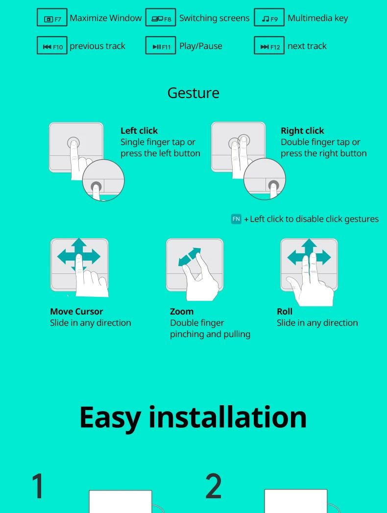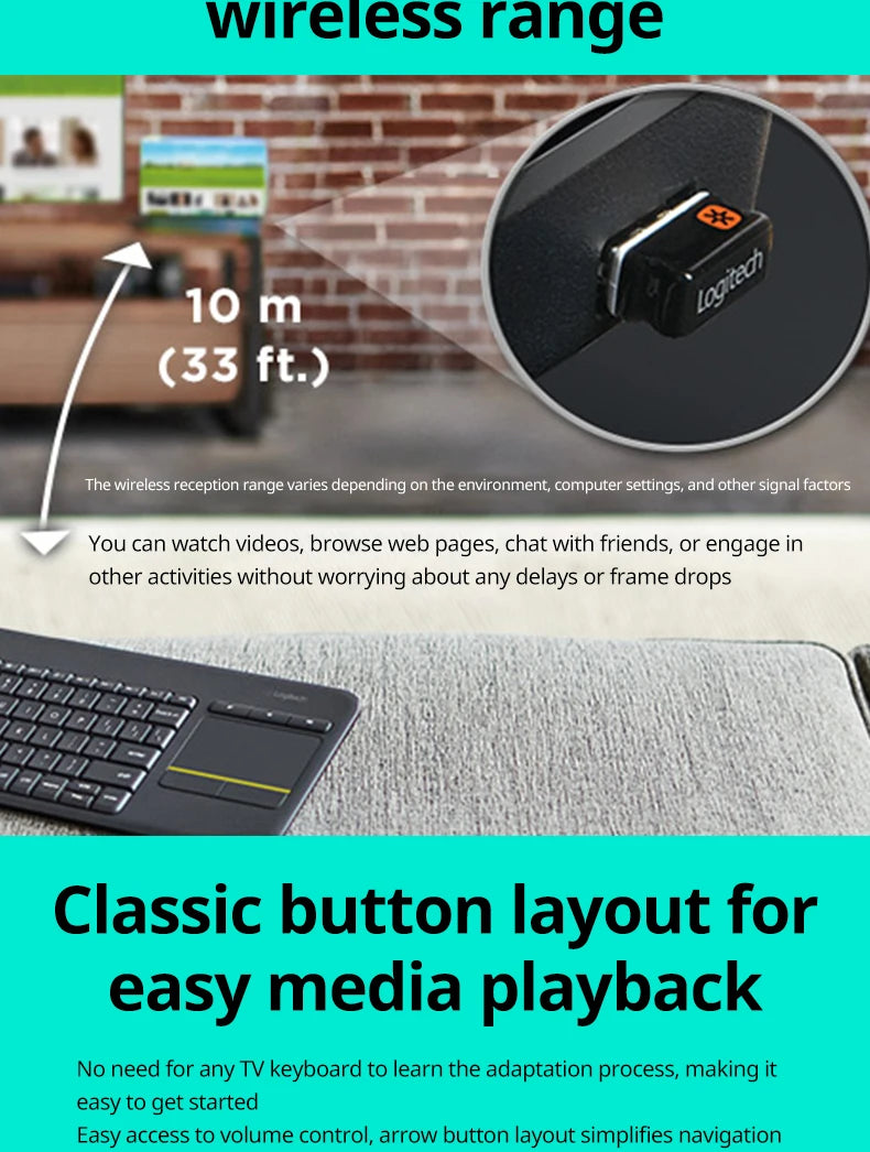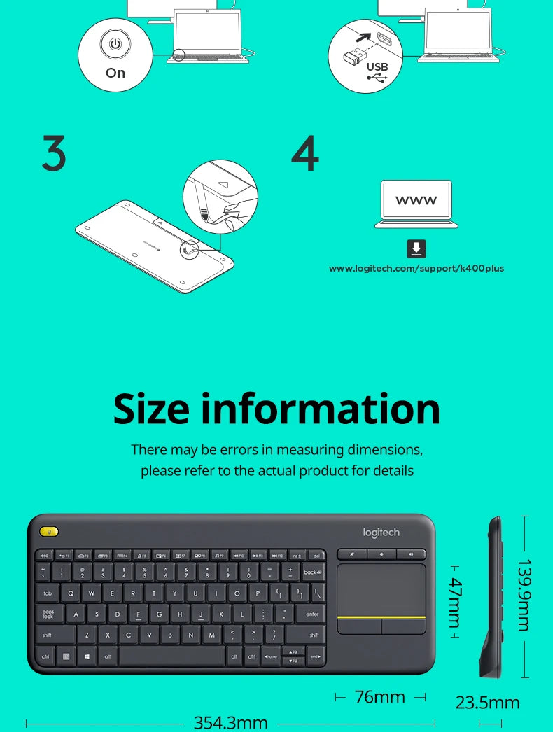 Android Smart TV Laptop Touch Panel Wireless Touch keyboard Thin Film keyboard Control your laptop from the sofa When you connect your PC to your TV, you can use the K400Plus to control your TV from the comfort of your sofa. Whether you log in to your account, search information, browse the web, write a blog, watch a movie, this keyboard can help you convenient + entertainment.